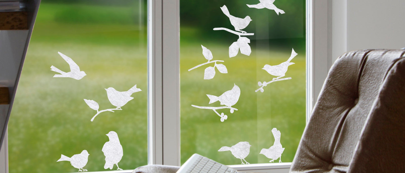 Fensterbilder mit Stil und FunktionFenstersticker haben auch eine Sicherheitsfunktion: Sie helfen dir, eine Glaswand oder -türe sichtbarer zu machen und Kollisionen zu vermeiden. Setze Farbtupfer im gläsernen Meeting-Raum und lass die Farbbilder zum Sichtschutz am Küchenfenster oder an der Terrassentür werden. Ausserdem können farbige Fensteraufkleber auch vor Vogelschlag schützen.
