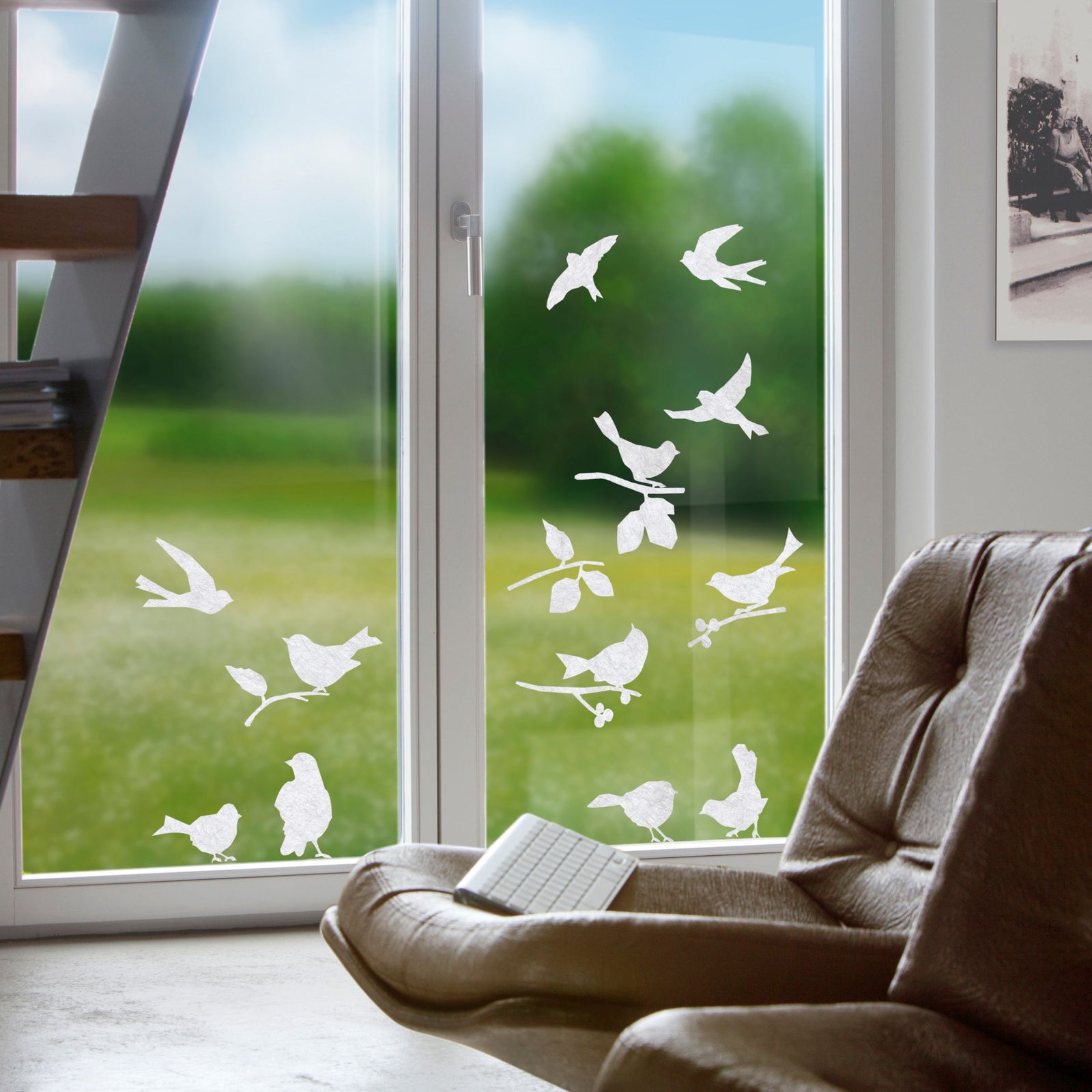 Frau Kuster geniesst den Ausblick aus ihrem liebevoll dekorierten Fenster auf die Föhre, wo jetzt im Herbst viele Vögel vorbeikommen, um sich etwas Futter zu holen.