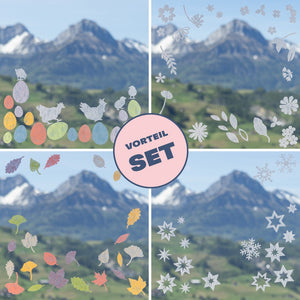 Mit diesem Vorteil-Set erhalten Sie für jede Jahreszeit die passende Fensterdekoration. Geckorieren.ch hat für Sie aus den beliebtesten GECKO IN THE BOX Sujets vier saisonbezogene Sets von Fenstersticker selektiert. Profitieren Sie gegenüber dem Einzelkauf von diesem vorteilhaftem Setpreis. Sie erhalten Ihr Vorteil-Set innert 1-3 Arbeitstagen versandkostenfrei geliefert.